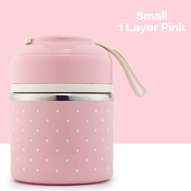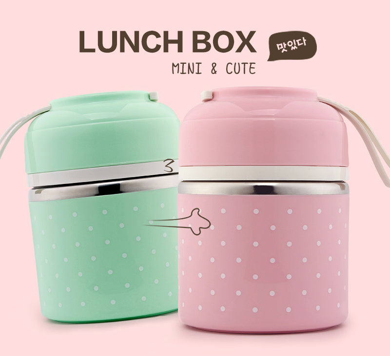 Cute mini polka dot thermal lunch box that can be the best warm gift for your kids! Small, exquisite and bright colors especially design for your kids. Each layer is sealed that can ensure the temperature of the food.